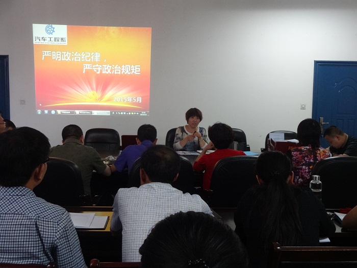 5月12日,为了深入学习贯彻党的十八大、十八届三中、四中全会精神和习近平总书记系列重要讲话精神,按照公司党委的安排部署,汽车工程系组织开展以“严明政治纪律、严守政治规矩”为主题的集中教育活动。会议由系党总支书记王俐凤主持,全体教职工参加此次学习。