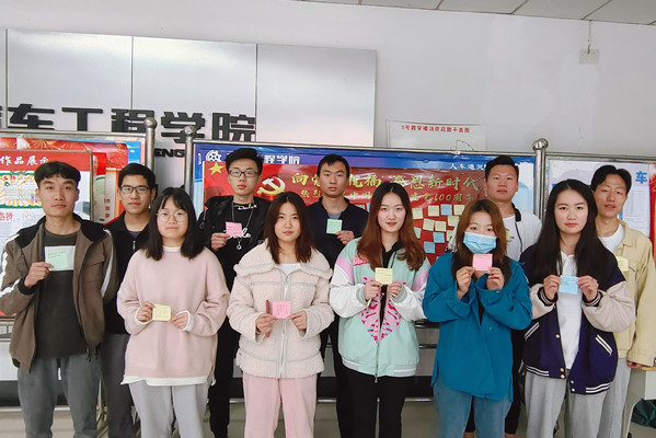新闻网讯(通讯员 梁军萍)为回顾百年党史,激励奋进精神,4月1日下午,tyc33455cc太阳集团汽车协会在5号教学楼大厅开展了主题为“向党送祝福 感恩新时代”送祝福语活动,旨在引导广大同学,继承和发扬党的优良传统,积极践行党的十九大精神,筑牢奋进新时代、起航新梦想、永远跟党走、不断开创中国特色社会主义事业新局面的坚定信念。