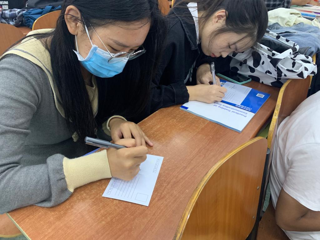 18日下午,2021级新生收到了公司统一印制的中秋主题明信片,大家写下思念与祝福,让明信片捎给远方的亲人和朋友。这些明信片在中秋节当天统一盖上邮戳,载着同学们的祝福,寄向远方。19日下午,公司还组织所有中秋假期留校新生在5209、5109教室集中观看了青春励志电影。