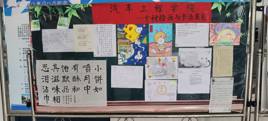 本次系列活动以书画展览的形式拉开帷幕,以个人或团支部为单位,围绕中秋传统文化和校园文化主题创作绘画和书法作品。活动共征集各类作品30余幅,评审展出10余幅,有以诗歌表达中秋思乡之情的,有以手抄报形式阐释中秋节日内涵的,还有以优美书法展示古诗词之美的。
