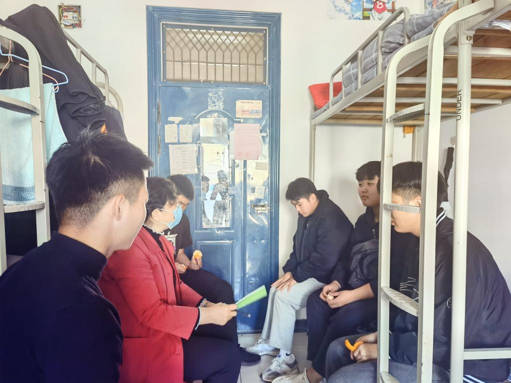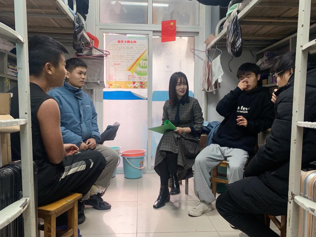 老师们利用课余、中午或者晚间深入2021级新生宿舍,与同学们进行深入交流,了解同学们的思想动态、学习和生活等诉求,引导大家正确认识疫情防控形势下校园封闭管理的必要性,及时接种新冠疫苗,提醒大家注意冬季消防安全、及时做好宿舍卫生,共创十星级文明寝室。同时,老师们对新生们提出了殷切期望,希望大家尽早做好老员工活规划,确立专业学习目标,并对学习中的一些疑难问题进行了解答。
