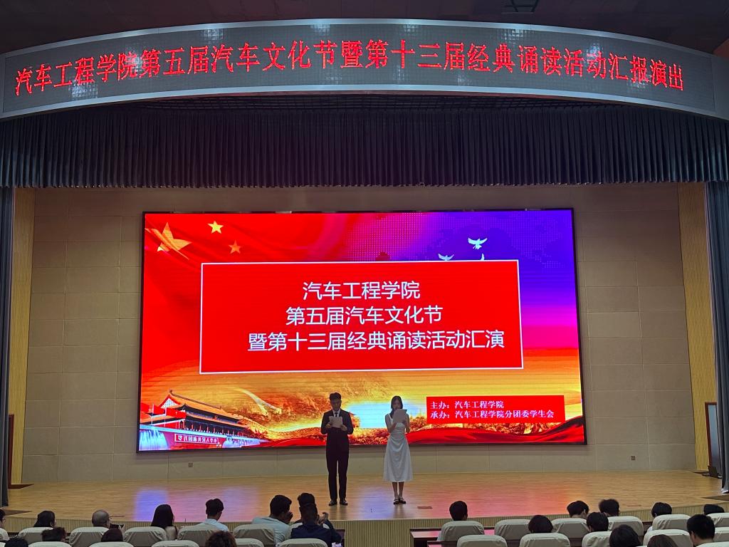 (通讯员梁军萍)为传承和弘扬中华民族优秀传统文化,提升在校老员工的道德素养,6月14日晚6:30点,公司第五届汽车文化节暨第十三届经典诵读活动汇报演出在图书馆会议中心顺利举行。专职组织员梁军萍、副经理秦挽星、员工党支部书记张琦、22级辅导员、tyc33455cc太阳集团分团委员工会成员及22级400百余名同学代表共同观看了演出。