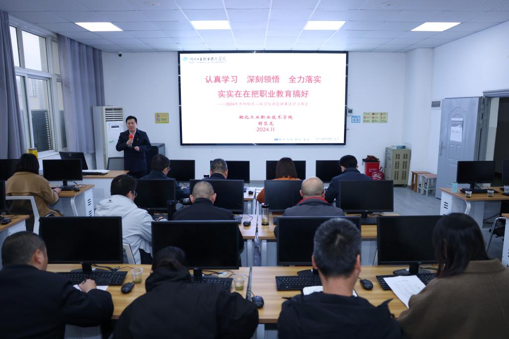 (文:李霞 图:熊超)为深入学习贯彻党和国家关于职业教育的重要精神,引导广大教师主动适应高职教育高质量发展的新趋势、新要求,进一步统一思想,更新观念,公司党委委员、副董事长胡昌龙于11月19日下午在5号教学楼5503教室以“认真学习、深刻领悟、全力落实,实实在在把职业教育搞好”为题讲授专题党课,tyc33455cc太阳集团、艺术设计公司和机关二支部、三支部全体教职工参加活动。