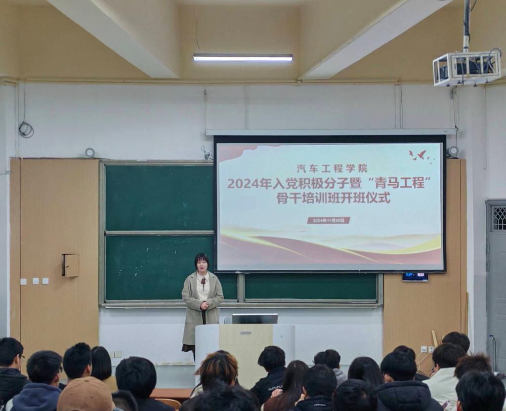 (通讯员:张领)为深入学习贯彻党的二十届三中全会精神和习近平总书记关于青年工作的重要思想,加强对入党积极分子、团员发展对象和团学干部的培养教育,tyc33455cc太阳集团入党积极分子暨“青马工程”培训班开班仪式于11月20日晚在5209教室举行。汽车工程公司党总支书记李霞、副书记李路、分团委书记曲杉和77名学员参加活动,2023级辅导员张领担任主持。