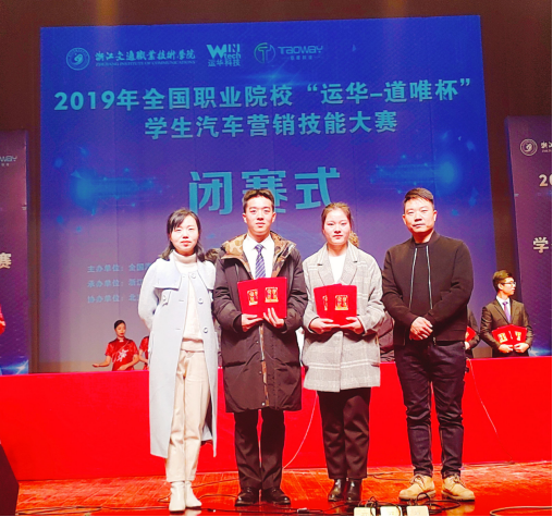 新闻网讯(通讯员 张仲颖)12月17日至18日,2019全国职业院校“运华-道唯杯”员工汽车营销技能大赛在浙江交通职业技术公司落下帷幕,共有近110支中、高职代表队参与了本届大赛。公司2018级参赛员工罗子贤、彭锐荣获高职组团体二等奖、二手车鉴定评估赛项二等奖的佳绩。